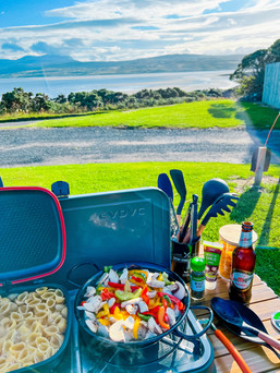 We arrived for our first NC500 stopover, the beautiful Fortrose Bay, Inverness. What a pitch and what a view!! We were all very hungry after a full day of adventures and driving, therefore a nice home cooked meal was on the cards.